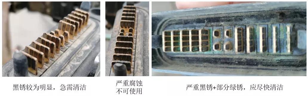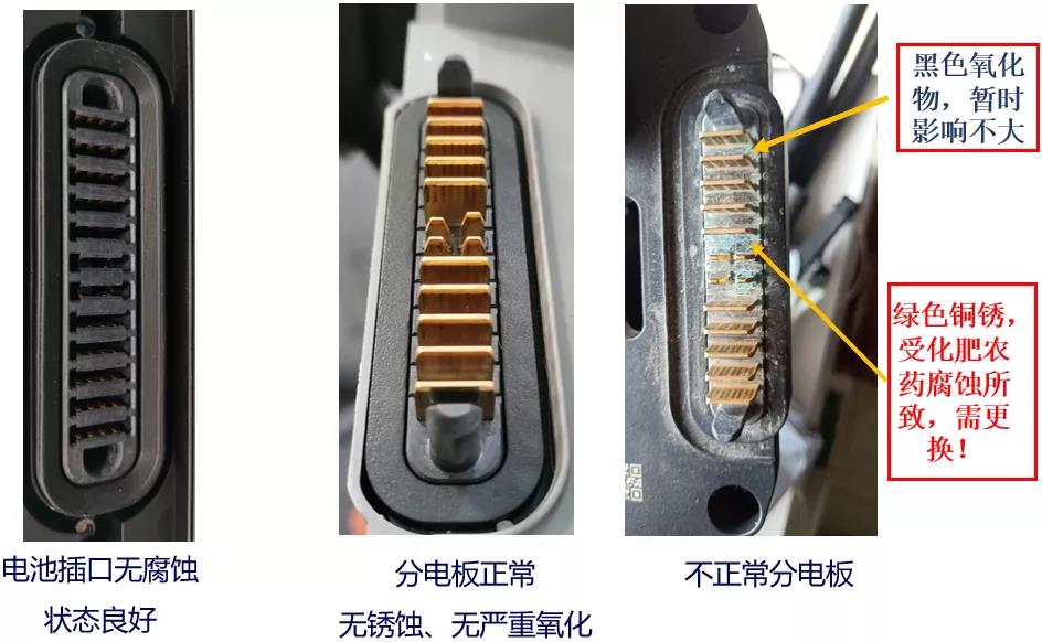 農業無人機涉及的插頭包括飛行器分電板、電池插頭、充電站插頭,它們在工作時因為長期使用、化學物質腐蝕而產生黑色氧化物甚至綠色銅銹,新入行的飛手往往忽視了插頭清潔,從而導致插頭高溫、墜落等各種故障。