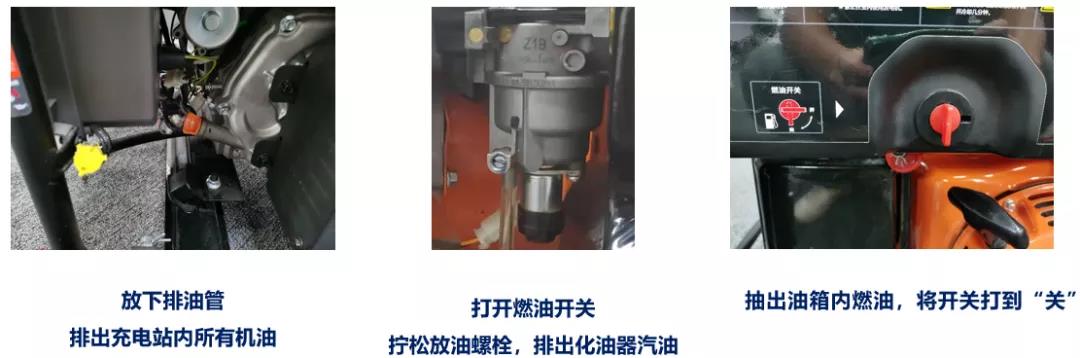 當充電站長期不使用時,需排出油箱和化油器里的燃油,并放出機油。汽油不放出來,會對油箱和管路具有一定腐蝕。而長期使用過的機油含有一定的碎屑,長期不使用會產生沉淀。