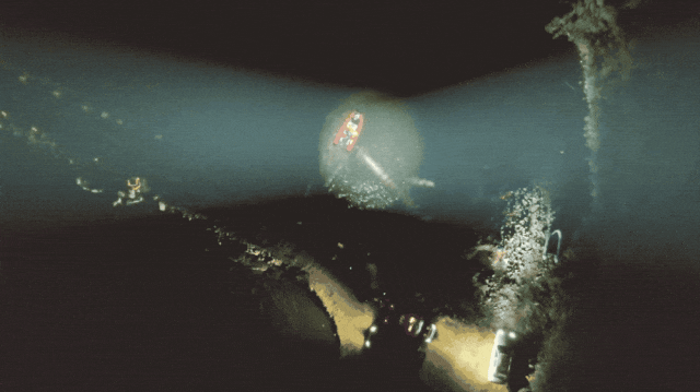 現場“三斷”狀態仍在持續,受地形遮擋,無人機無法異地降落。救援隊將衛星電話裝入泡沫箱,利用無人機拋投器掛載泡沫箱進行空中拋投;同時使用 M350 RTK 搭載探照燈指引村民,并通過喊話器持續向村民喊話提示。