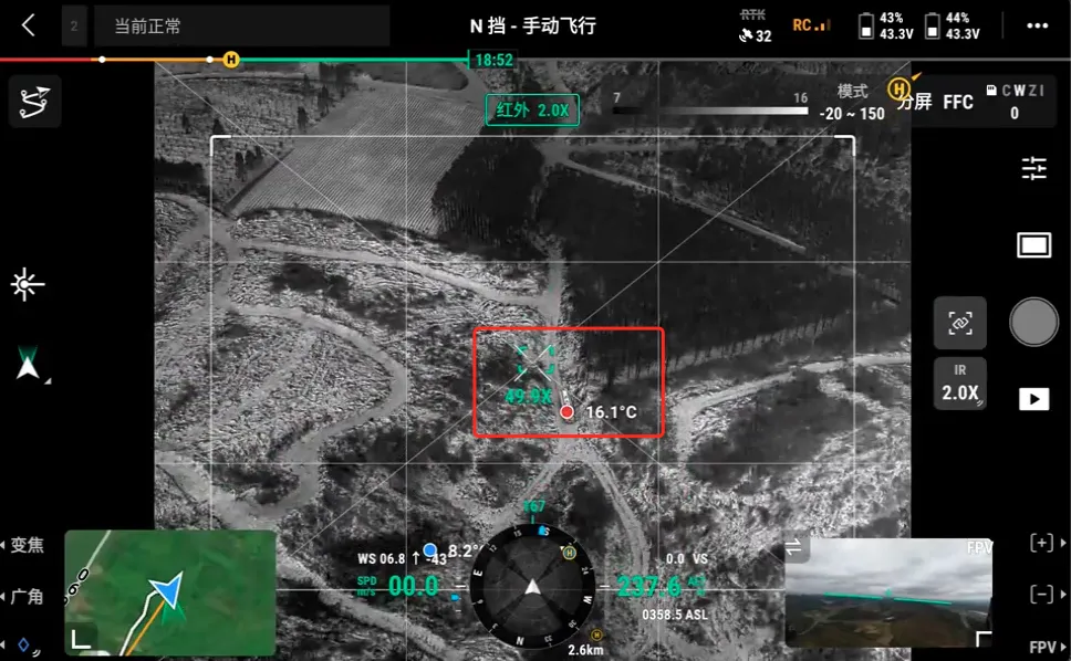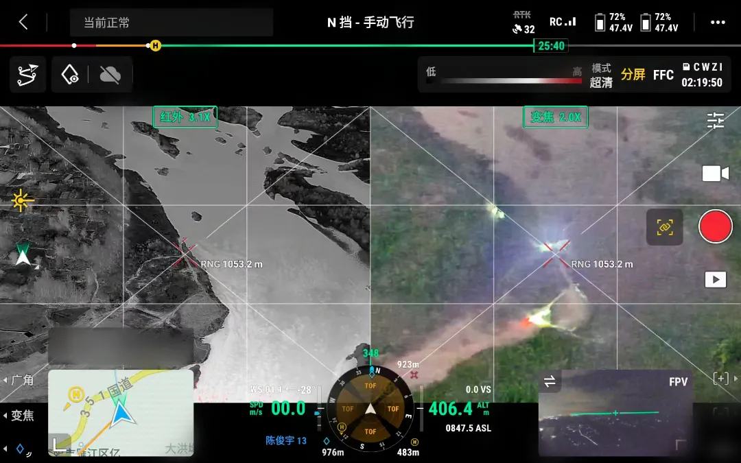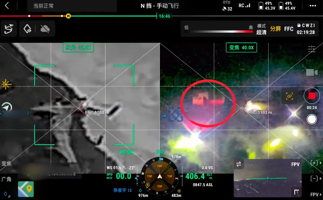在日常執法行動中,為了確保調查的順利進行,無人機通常會與目標物保持較遠距離。在本次任務中,即便無人機距離目標遠達 1200 米,禪思 H30T 的熱成像相機和夜視相機仍然能夠清晰呈現目標物,為執法行動提供有力保障。