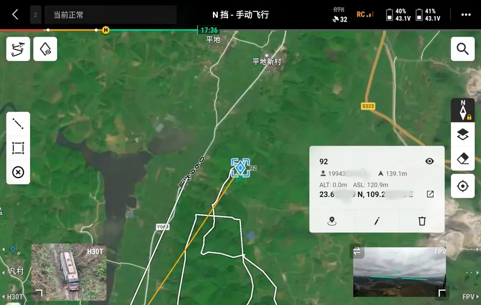 發現車輛后,工作人員通過打點定位功能獲取車輛坐標,并為地面搜索隊規劃最佳行進路線,搜索隊直接前往目的地。同時,無人機保持高空視角,持續觀察被盜車輛周圍環境,為現場布控提供信息支持。