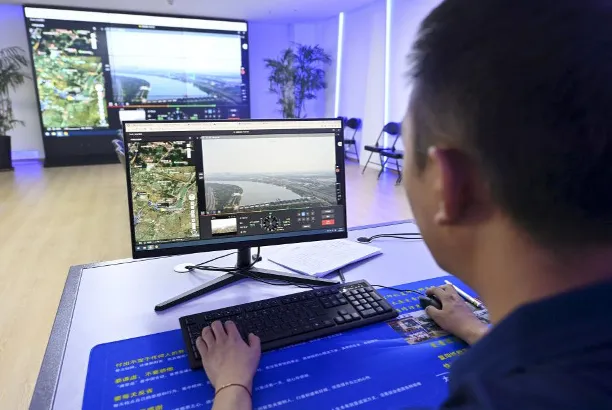 工作人員遠(yuǎn)程查看無人機(jī)實(shí)時(shí)畫面