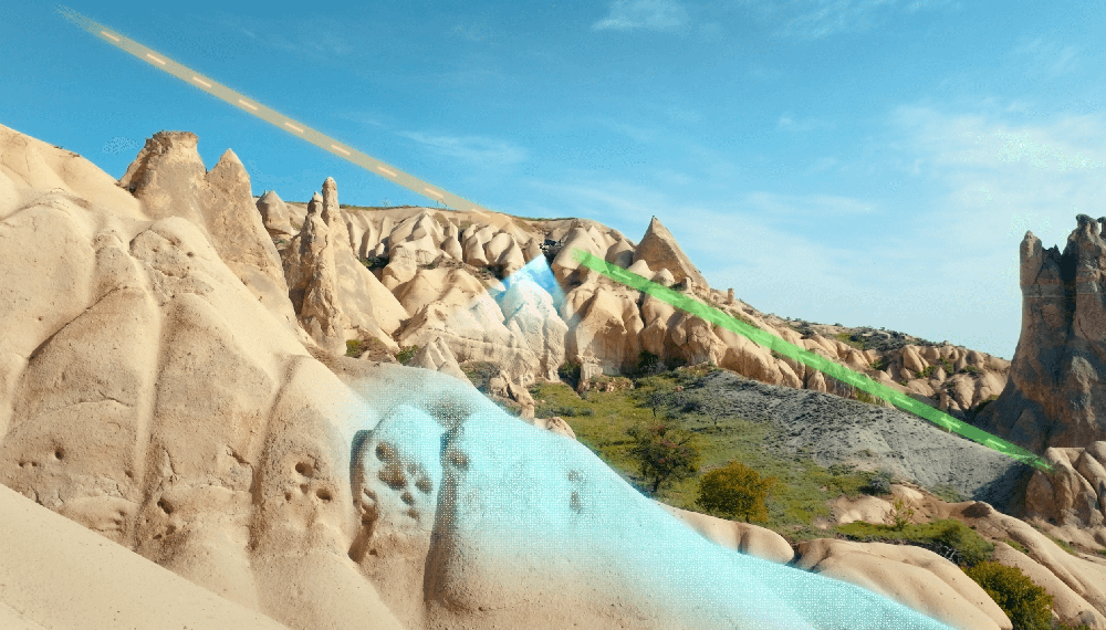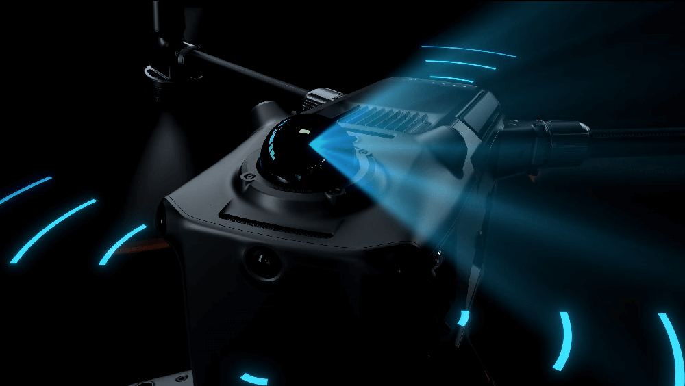 由環掃激光雷達、高精度毫米波雷達及全彩低光魚眼視覺傳感器構成的強大避障系統,全面躍升了 Matrice 400 的避障能力、融合定位能力。它能探測細小障礙物,即使在夜間也可避開橫跨山野的高壓線,穿透雨霧感知周圍環境,全天候保障作業安全。同時,Matrice 400 可貼近玻璃樓宇或風機葉片穩定飛行,甚至可在返航點尚未刷新時,從樓邊、山腳、橋邊等場景安全返航。機身的四個全彩低光魚眼視覺傳感器也可提供彩色飛行輔助影像,讓飛行更安心。