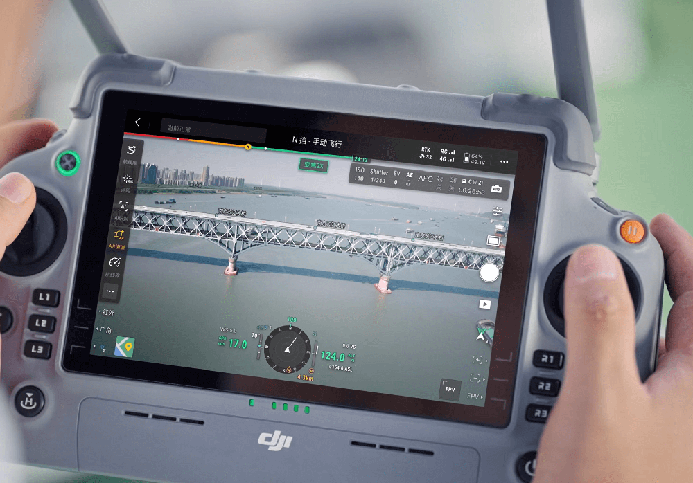借助智能 AR 投射,無人機避障系統在電網巡檢等任務中會自動檢測前方的電線障礙物,并以方便辨認的 AR 線條投射在遙控器畫面上,讓飛手對周圍環境一目了然。在城市等區域作業時,不論是白天還是夜間,遙控器的畫面上都可以實時顯示建筑、地標等名稱,并以顯眼線條標記核心道路。AR 飛行軌跡可在返航、繞障及飛向目標點的過程中,實時顯示無人機的路線規劃。降落時顯示無人機近地投影,幫助操作人員確認目標降落位置。此外,Matrice 400 還支持點線面繪制,無需建模即可在遙控器畫面中打點獲取目標位置,繪線測算多點之間的距離及繪面測算區域面積。點線面繪制結果可同步到大疆司空 2 云平臺,團隊協作更高效。