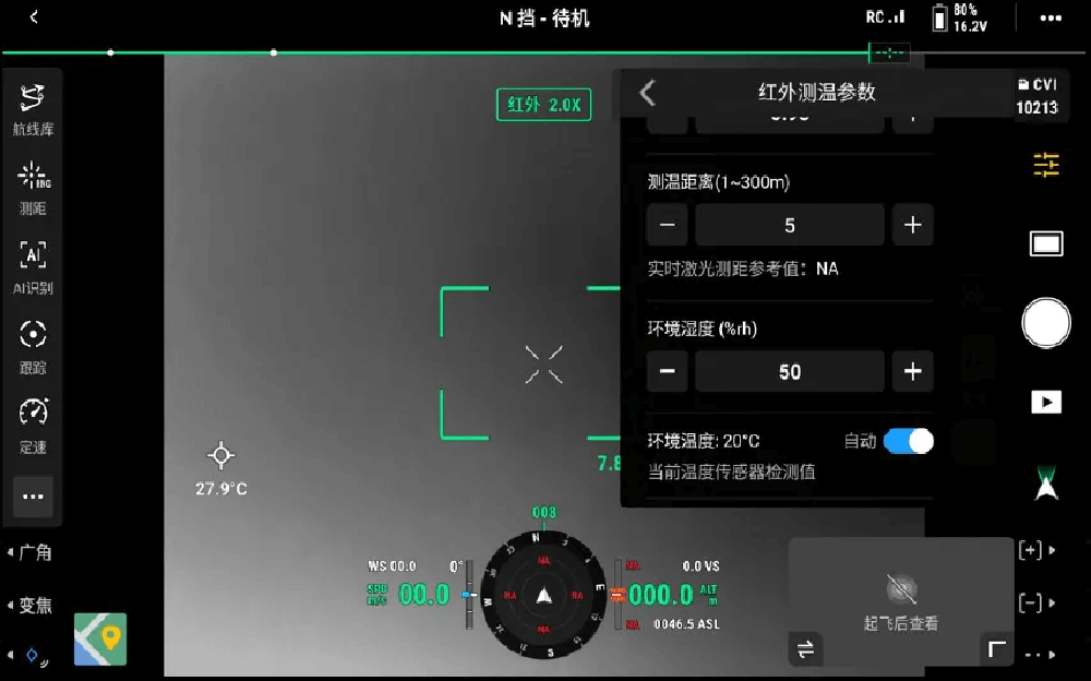 Matrice 4T 熱成像相機默認開啟紅外超分模式,分辨率可達 1280 x 1024;每臺設備在出廠前均完成測溫精度標定,可借助機身溫度傳感器,實時修正溫度測量結果。