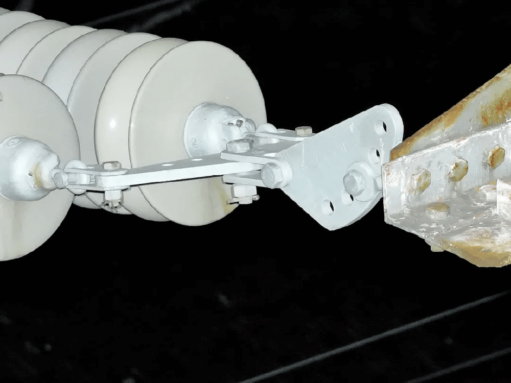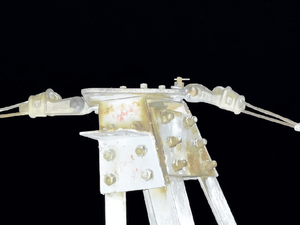 從下圖可以看到,即便是在無光的夜間環境中,探照燈所投射出的光束依然能夠準確無誤地聚焦于巡檢的關鍵目標。由于夜間背景漆黑,更加突出了銷釘、綁扎線等關鍵部位的細節,為巡檢人員提供了高清畫面。